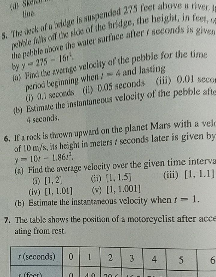 A Find the average velocity of the pebble for the time period beginning when t 4 and lasting i 01 seconds ii 005 seconds iii 001. Answered expert verified. If a pebble falls off the side of the bridge the height in feet of the pebble above the water surface after t.